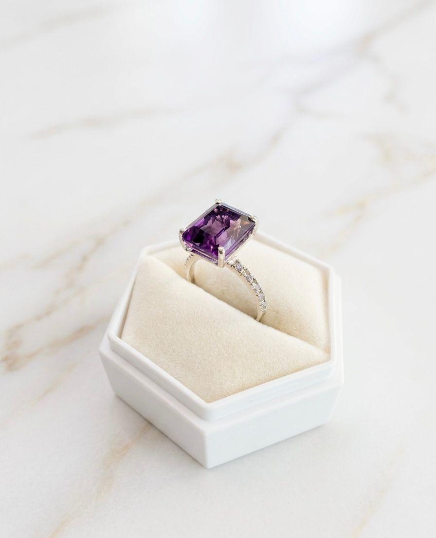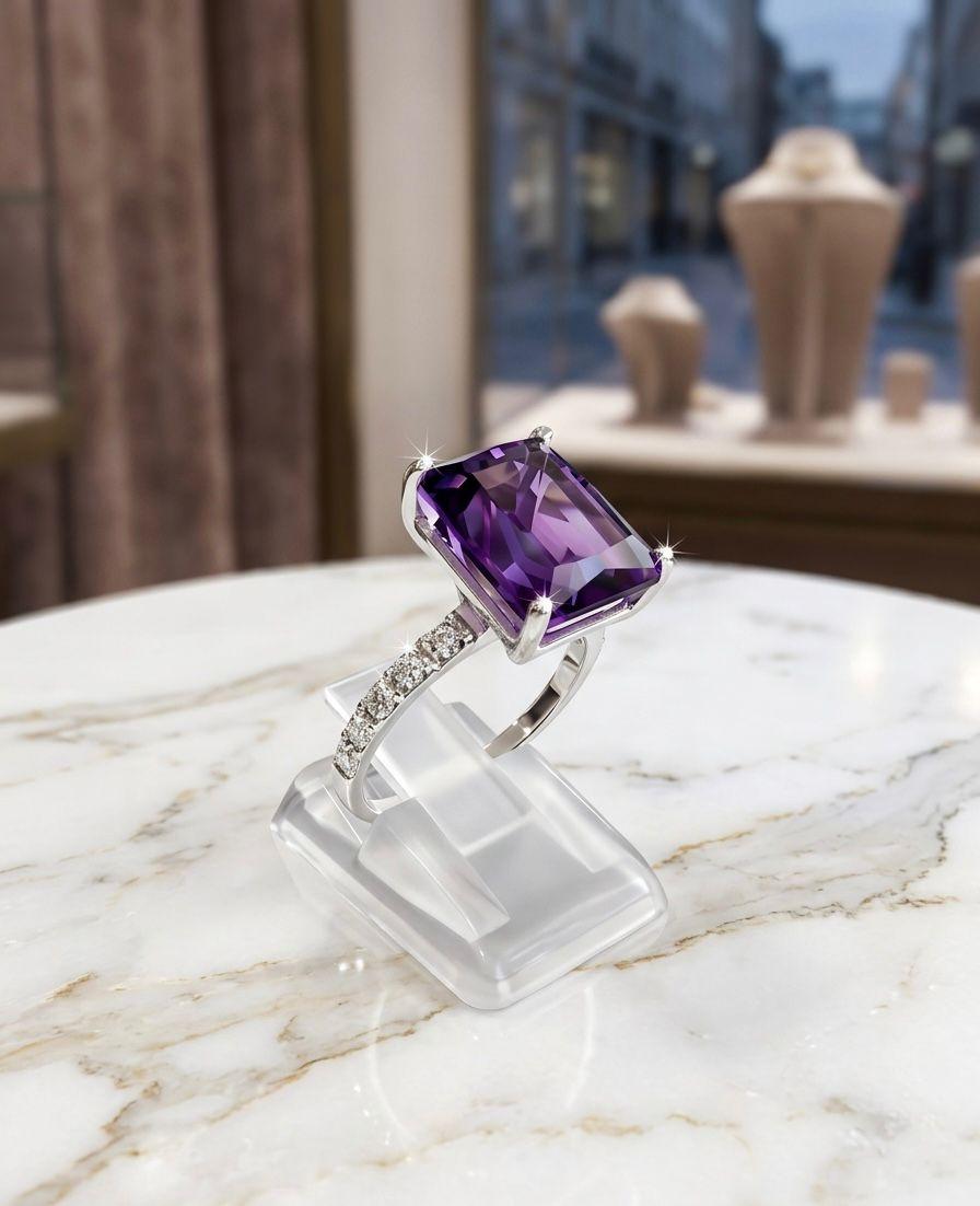 Featuring an Emerald Cut Amethyst Set 925 Sterling Silver.